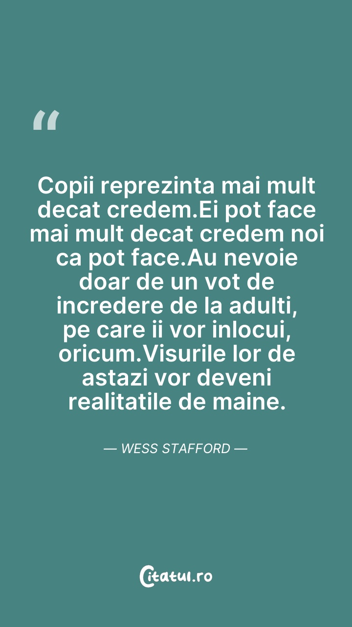 Copii reprezinta mai mult decat credem.Ei pot ... Citește tot citatul >