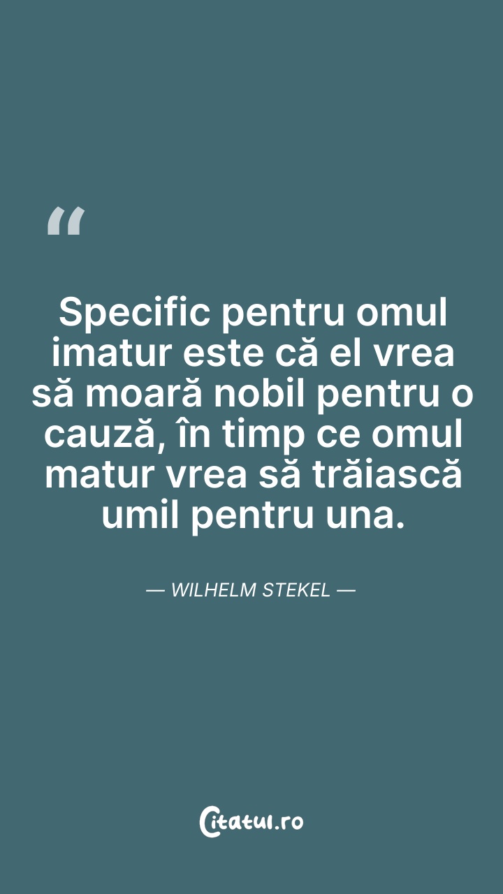 Omul imatur aspiră să moară cu demnitate pent ... Citește tot citatul >
