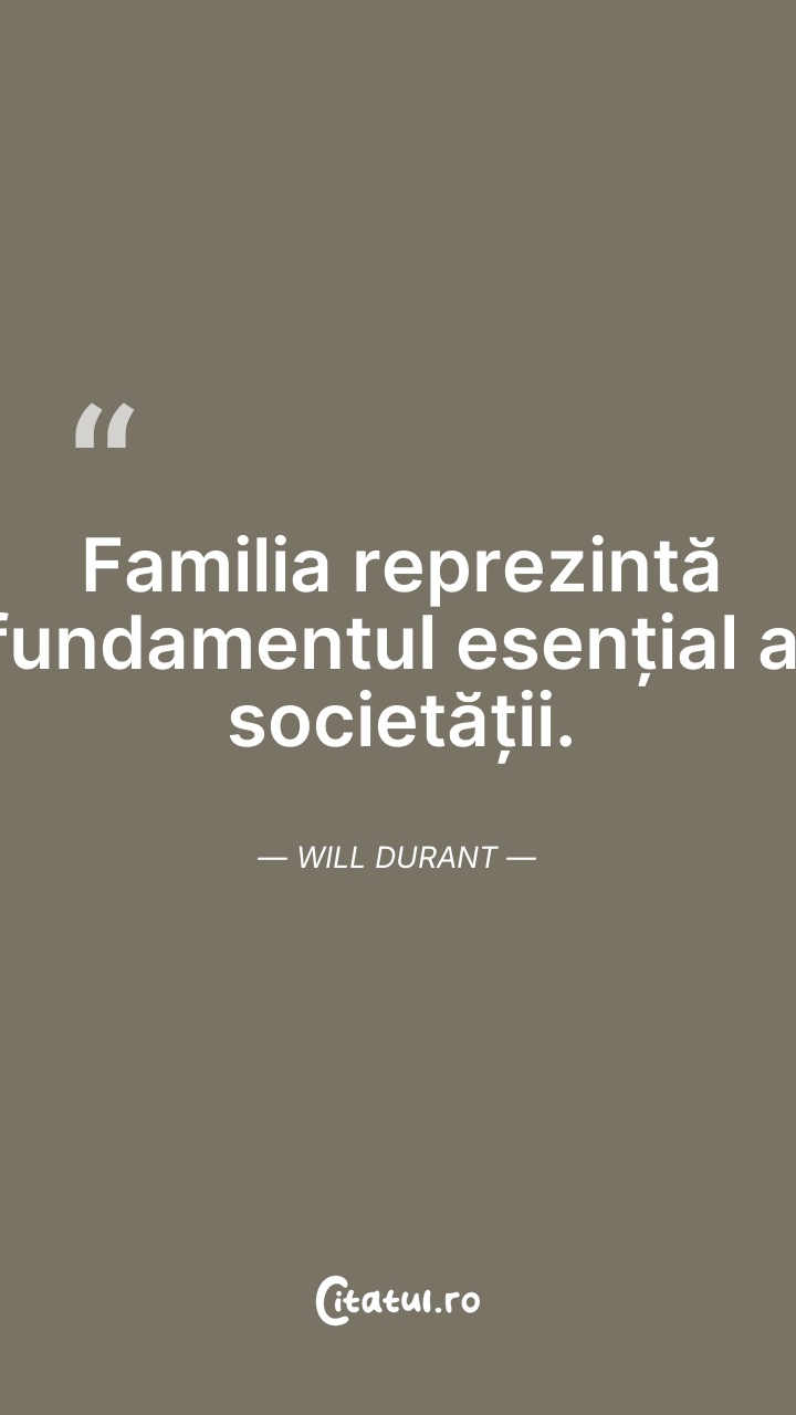 Familia este nucleul civilizaţiei. Will Duran ... Citește tot citatul >