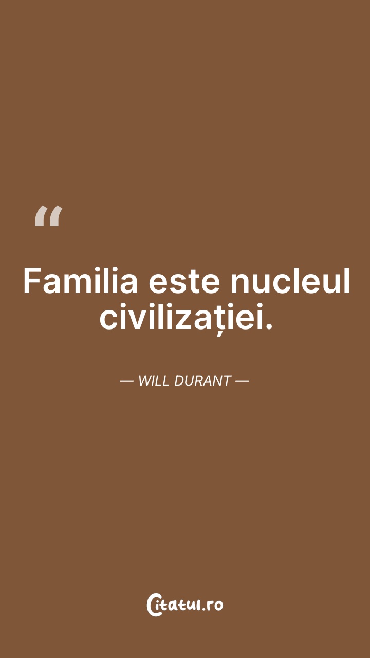 Familia este nucleul civilizației. Will Duran ... Citește tot citatul >