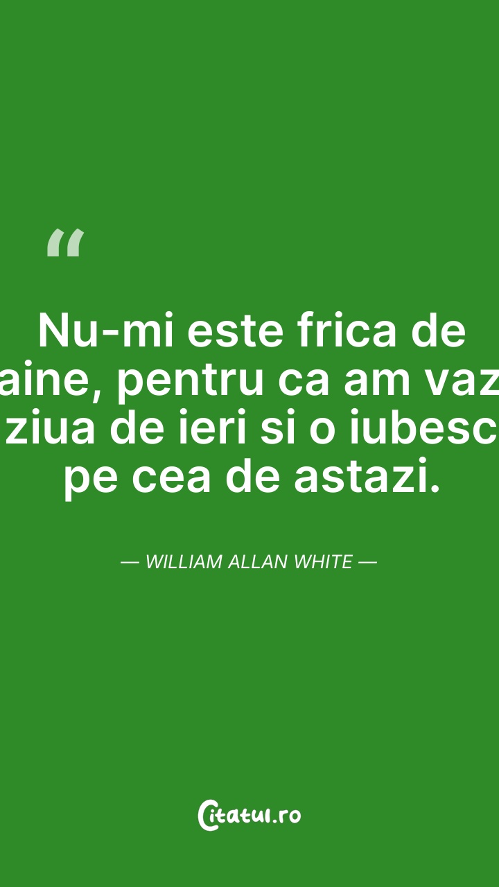 Nu-mi este frica de maine, pentru ca am vazut ... Citește tot citatul >