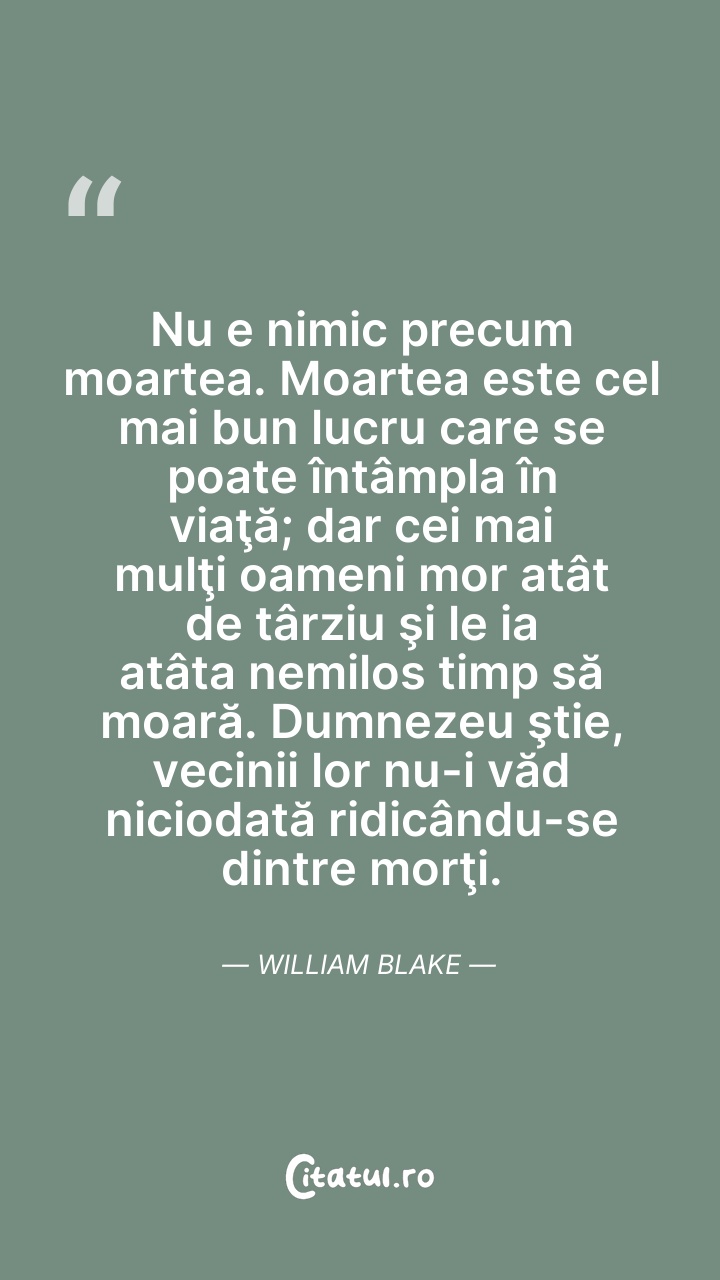 William Blake a fost un poet, vizionar, pictor și gravor englez. În mare parte nerecunoscută în timpul vieții sale, opera diversă și profundă a lui William Blake este astăzi considerată esențială și semnificantă atât în istoria poeziei cât și a artelor vizuale.