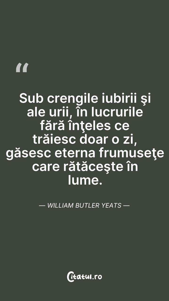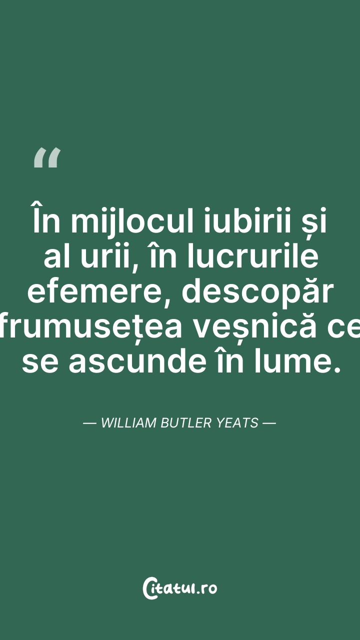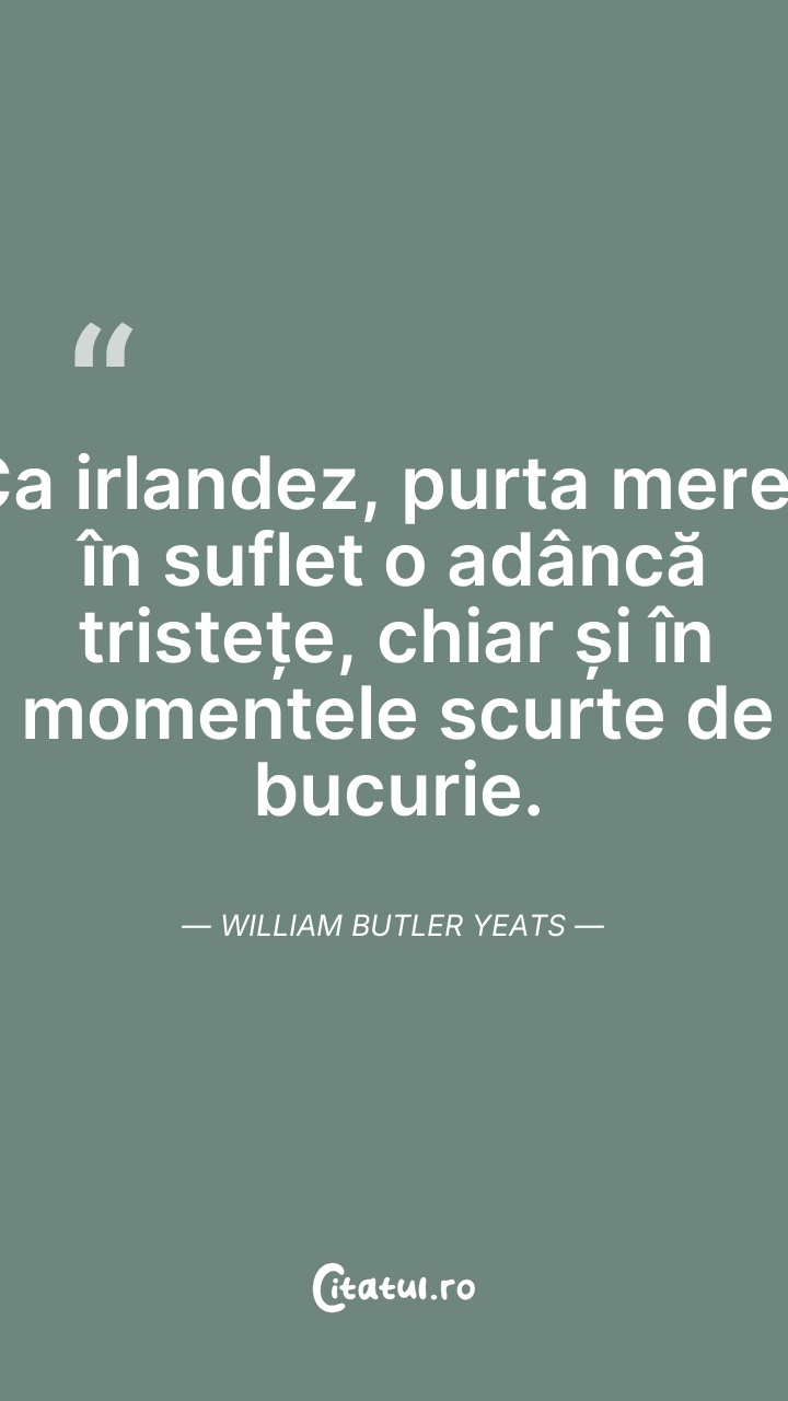 William Butler Yeats a fost un poet și dramaturg irlandez, una dintre cele mai importante figuri al literaturii secolului XX, laureat al Premiului Nobel pentru Literatură în 1923.