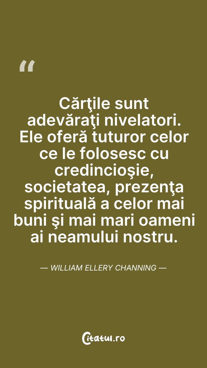 Cărţile sunt adevăraţi nivelatori. Ele oferă ... Citește tot citatul >