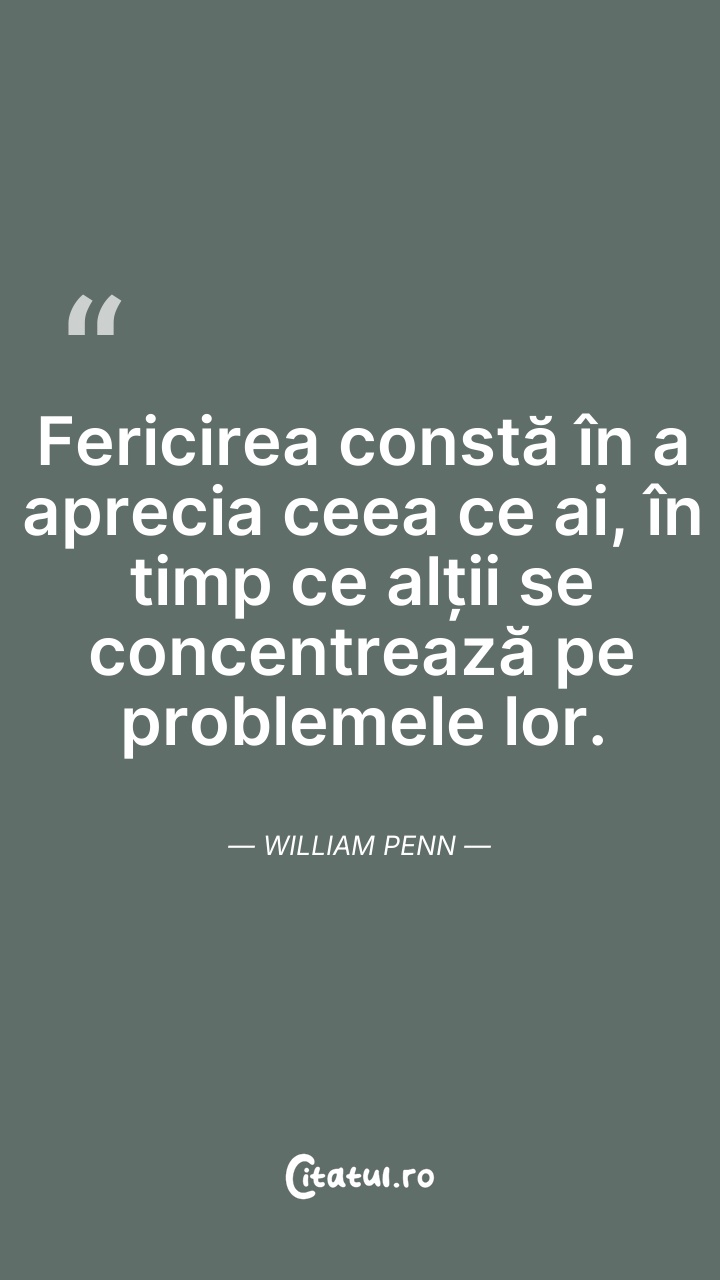 Fericirea constă în a aprecia ceea ce ai, în ... Citește tot citatul >