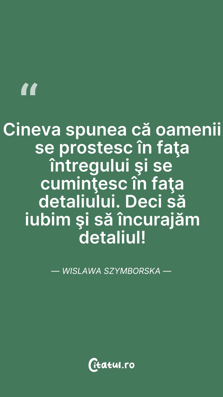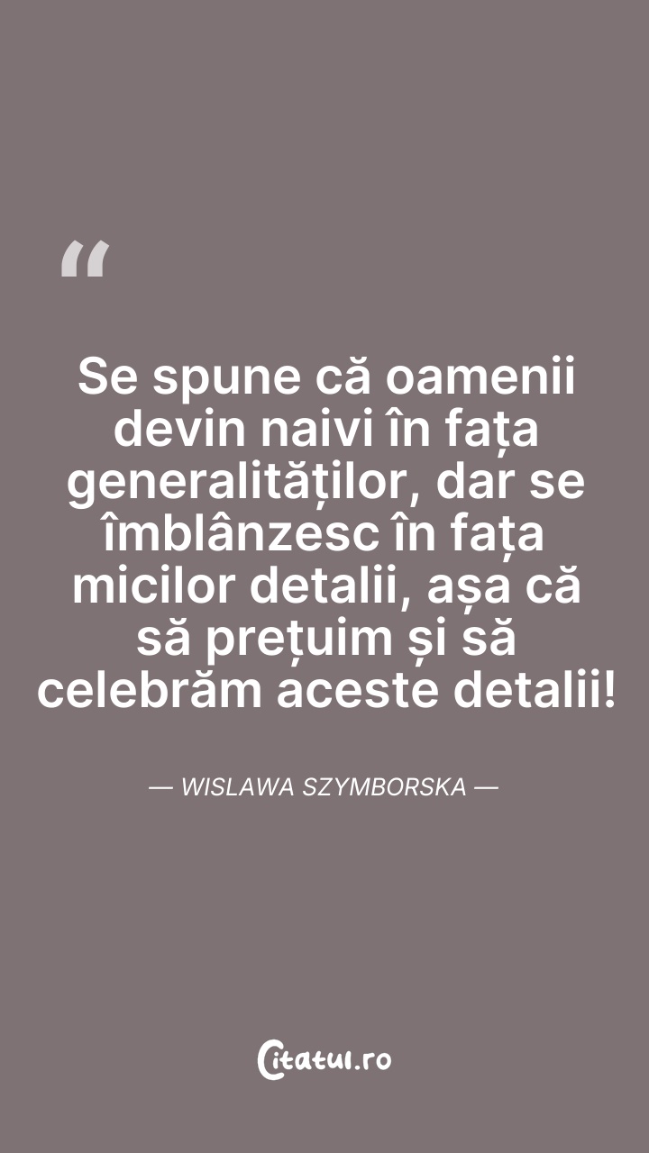 Wisława Szymborska-Włodek, Maria Wisława Anna Szymborska a fost o scriitoare poloneză. În anul 1996 a primit Premiul Nobel pentru Literatură. S-a născut in Prowent, care de atunci a devenit o parte a orașului Kórnik, iar mai târziu s-a mutat în Cracovia unde a locuit până la sfârșitul vieții. Ea a fost numită „Mozart al Poeziei”. In Polonia, vânzările cărților autoarei rivalizează cu cele ale celor mai cunoscuți prozatori, chiar dacă a remarcat într-unul din poemele sale, „Unii iubesc poezia”, că nu mai mult de doua persoane dintr-o mie sunt atinși de arta sa.
