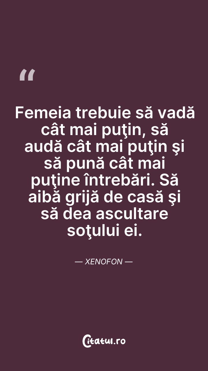 Femeia trebuie să vadă cât mai puţin, să audă ... Citește tot citatul >