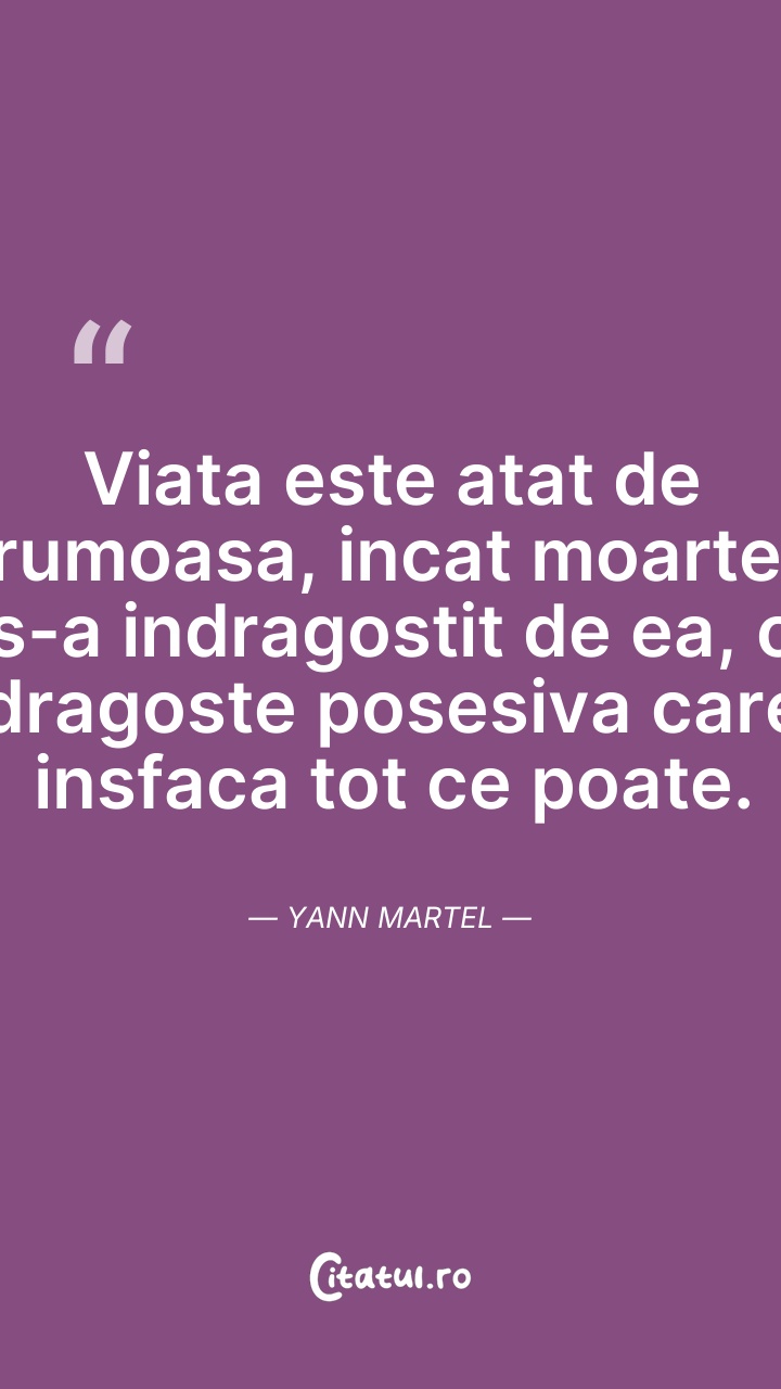 Yann Martel este un scriitor canadian de origine spaniolă renumit pentru romanul Life of Pi. Bestsellerul international a fost vândut în mai mult de 12 milioane de exemplare în întreaga lume și s-a păstrat mai bine de un an pe lista bestsellerurilor de la New York Times și The Globe and Mail, pe lângă multe alte liste de lucrări de succes. Filmul Viața lui Pi, adaptare cinematografică a romanului, în regia taiwanezului Ang Lee, a obținut patru premii Oscar.
