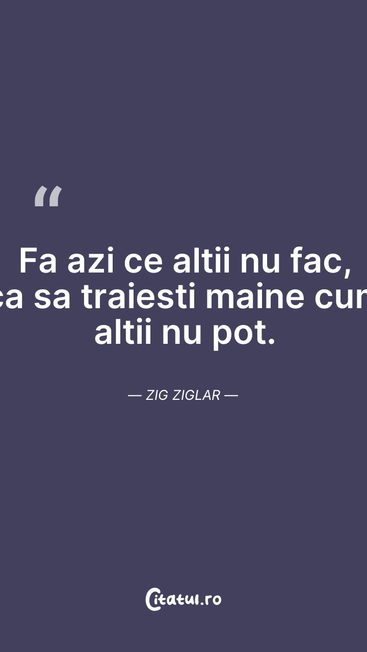 Hilary Hinton “Zig” Ziglar a fost un autor american de cărți de literatură motivațională. S-a născut in Alabama, a avut 11 frați și surori și a rămas orfan de tată la vârsta de 6 ani. Încă din clasele primare prietenii i-au spus Zig. S-a înscris la colegiu, la care ulterior a renunțat începând să lucreze ca agent de vânzări. A călătorit prin lume decenii întregi ținând discursuri despre cum sa-ți trăiești viața din plin. În 1975, i-a fost publicată prima carte, care a devenit bestseller. În total, a scris 30 de cărți - despre dezvoltare personală, vânzări, leadership, etică, performanță, persuasiune, succes profesional și personal dar și despre relații de cuplu. Noua din ele au figurat ca Bestseller in diverse topuri. Acestea sunt: Ne vedem in Top, Dincolo de vârf, Putem creste copii buni intr-o lume Negativă, Secretul căsniciei fericite, Curs de vânzări, Gândește optimist intr-o lume cenușie.